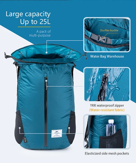 کوله پشتی نیچرهایک مناسب استفاده شهری و روزمره و کوله ورزشی بسیار سبک با پانل پشتی توری اسفنجی تنفس پذیر و مقاوم در برابر نفوذ آب باران با قابلت تا شوندگی و اشغال فضای کم می تواند همراه همیشگی شما باشد.