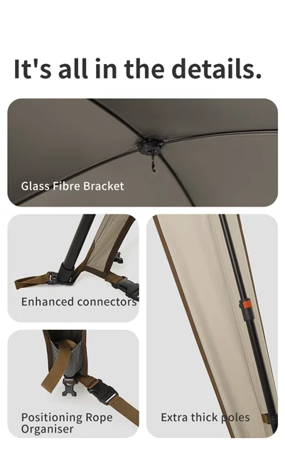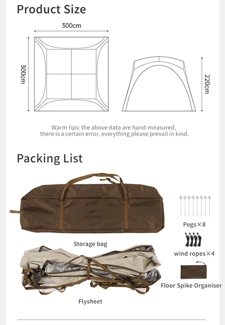سایه بان اتوماتیک نیچرهایک مدل CNK230WS014 همراه مطمین شما در سفرهای فضای باز و کمپینگ میباشد.ارتفاع این سایه بان در بلندترین نقطه 240 سانتیمتر میباشد و ابعاد کف سایه بان 300 * 300 سانتیمتر میباشد.پارچه از پلی استر آکسفورد تقویت شده با لایه تیتانیوم وینیل میباشد که مقاومت دوچندان دارد.