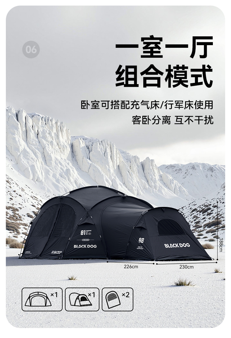 با چادر متصل به کانوپی بلک داگ | CBD2550PJ017 تجربهی کمپینگ خود را به سطحی جدید ببرید! طراحی منحصر به فرد و مقاوم در برابر هوا، این چادر را به انتخابی ایدهآل برای دوستداران طبیعت تبدیل کرده است. نصب آسان، فضای بزرگ و جنس بادوام، راحتی و امنیت شما را تضمین میکند. بهترین همراه برای ماجراجوییهای شما!