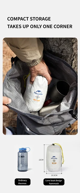 ننو 2 نفره نیچرهایک یک تخت خواب در جیب شما است. این تخت آویز فوق العاده جمع و جور همراه با یک کیف مخصوص ارائه می شود تا بتوانید آن را در هر مکانی با خود ببرید.داخل کیف کارابین و بند برای اتصال قرار داده شده است.