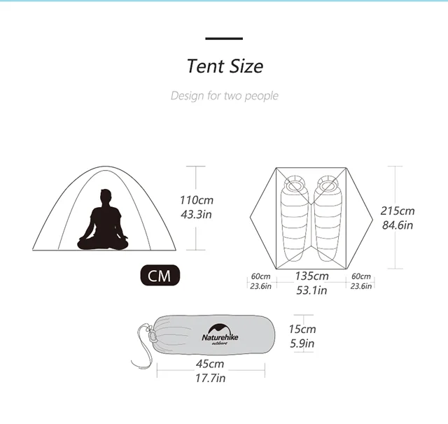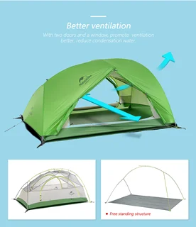 - جادار و سبک: راه اندازی آسان، فضای زیاد برای دو بزرگسال، اتاق جادار برای یک خواب خوب. این چادر 2 نفره فوق سبک تنها 2 کیلوگرم وزن دارد. با یک کیف حمل خوب بسیار جمع و جور است.
