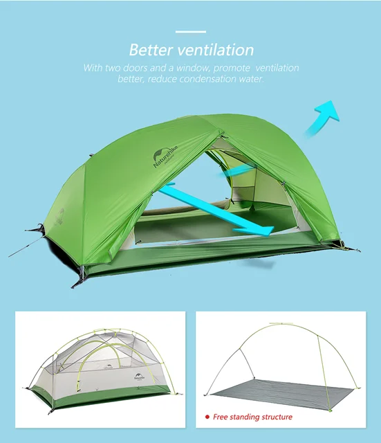 Naturehike Star River 2 یک چادر دو نفره مقرون به صرفه برای ماجراجویی های کوله پشتی در تمام طول سال است.با اسکلت محکم و روکش ضد آب که در برابر آب بیش از 3000 میلی متر مقاومت می کند، می توانید در هوای مرطوب و طوفانی به این چادر اعتماد کنید.همچنین برای کمپینگ در ماه های زمستان مناسب است، به شرطی که کیسه خواب و پد حرارتی مناسب را به همراه داشته باشید.اگرچه این بهترین انتخاب برای آب و هوای گرم و مرطوب نیست. چادر Naturehike Star River یک چادر ایده آل برای یک یا دو نفر است که می خواهند در تمام طول سال به مسیرهای پیاده روی بروند.در طرفین چادر دو در وجود دارد که چادر را بسیار جادارتر نشان می دهد.برای دستیابی به عملکرد برتر در زمینه وزن کمتر و عملکرد محصول، این چادر از پارچه نایلونی سبک 20 بعدی، ضد آب تقویت شده، با مش تنفس و تیرک آلومینیومی استفاده می کند. این چادر ضد باد، ضد آب، تنفس پذیر و سبک وزن است و ایمنی و راحتی را تضمین می کند.