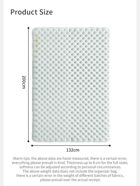 با زیرانداز کیسه خواب نیچرهایک سایز بزرگ، تجربه کمپینگ خود را به یک سطح جدید ببرید! ساختهشده با مواد باکیفیت و طراحی ارگونومیک برای راحتی بیشتر، این زیرانداز فشار و رطوبت را کاهش میدهد و خواب شبانه آرامی را برایتان فراهم میکند. سبک و کمحجم، ایدهآل برای ماجراجوییهای طبیعتگردی. همین حالا تهیه کنید و راحتی واقعی را احساس کنید!